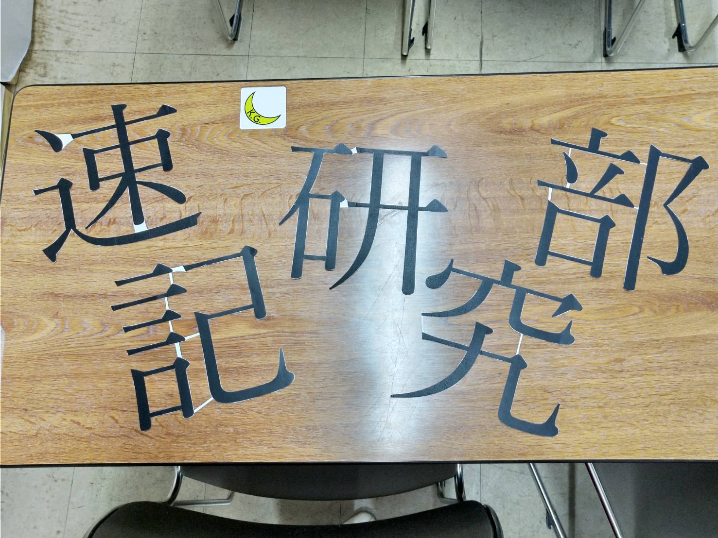 速記研究部の文字の部分は、大きく印刷した文字をカッターで切り抜きました